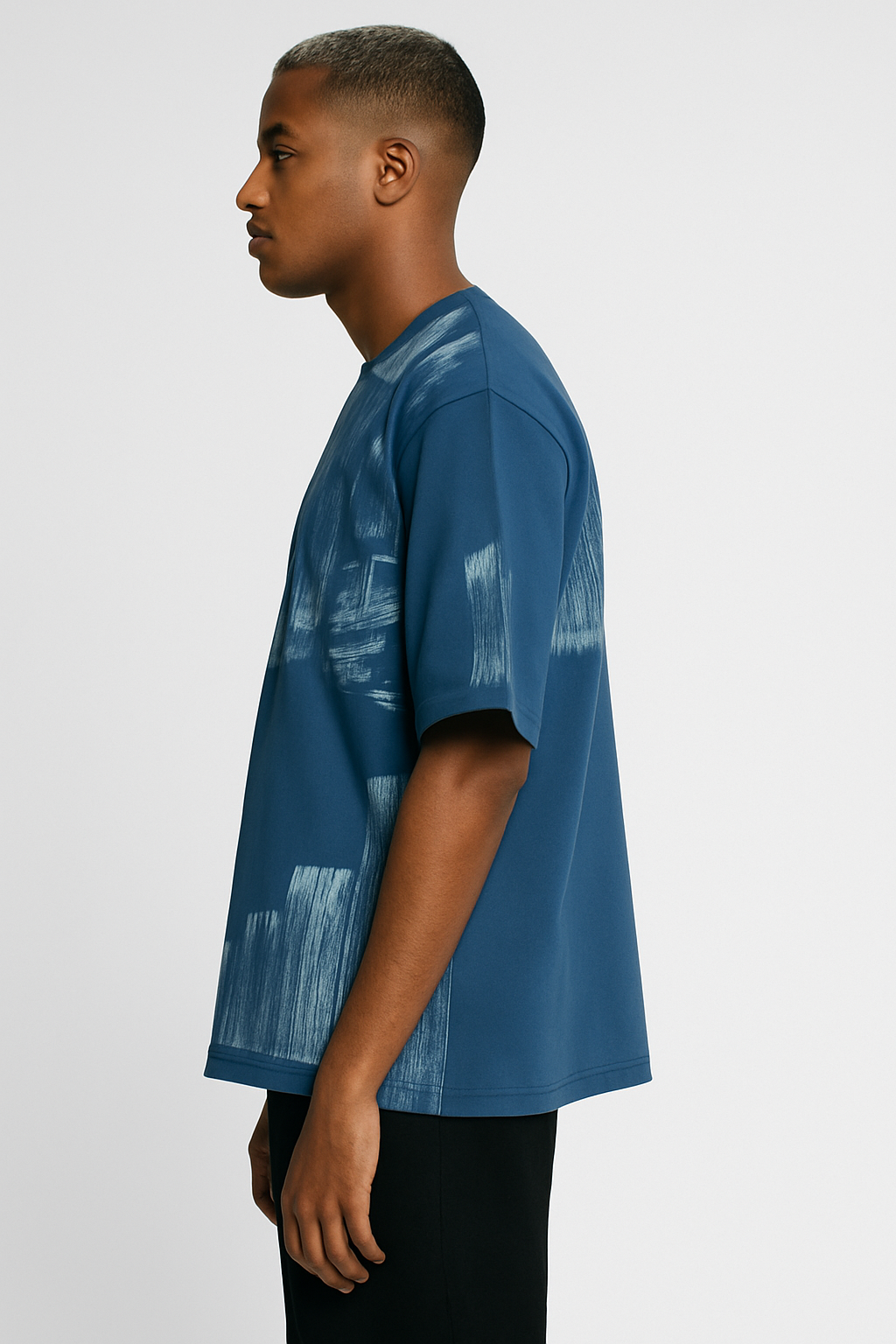 This men’s cotton T-shirt blends comfort with an artistic edge. Designed in a rich deep slate blue (#375D7A) base, it is highlighted with light abstract brush-stroke patterns, creating a modern streetwear look. Crafted from high-quality cotton, this T-shirt ensures breathability, durability, and all-day comfort. The relaxed fit and classic round neckline make it versatile for pairing with jeans, joggers, or shorts, whether for casual outings, daily wear, or trendy styling.