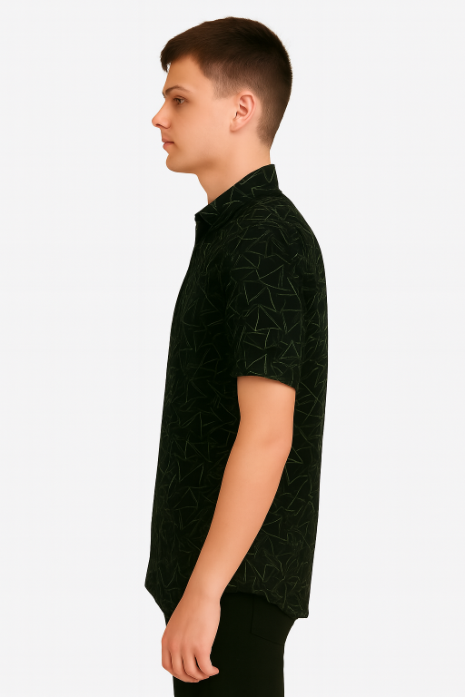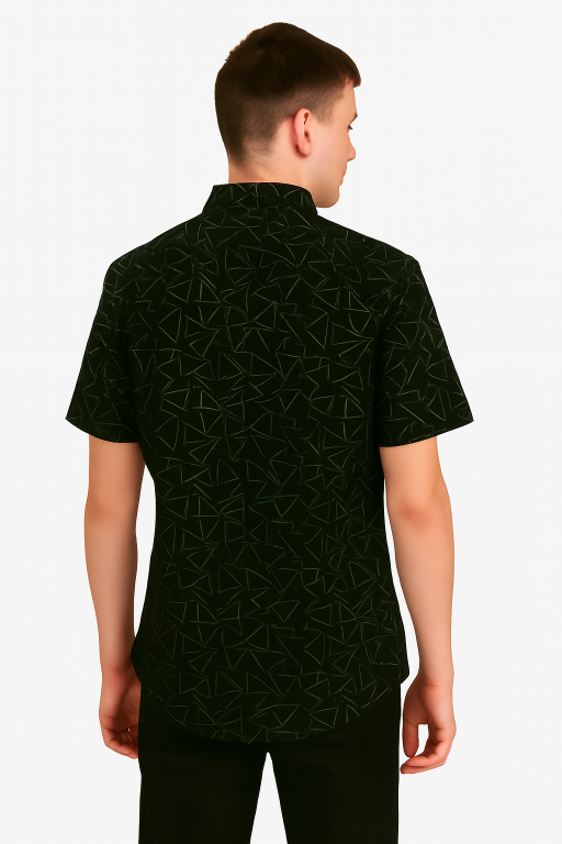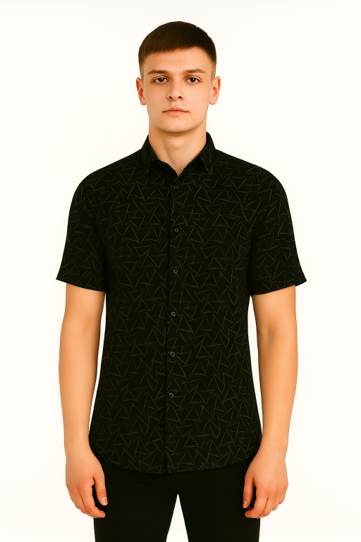 Step up your casual fashion game with this Men’s Black Printed Short Sleeve Shirt. Featuring a modern star-inspired geometric print on a deep black base, this shirt adds a stylish twist to your daily wear. Made from a lightweight cotton blend, it ensures breathability, keeping you cool and comfortable throughout the day.