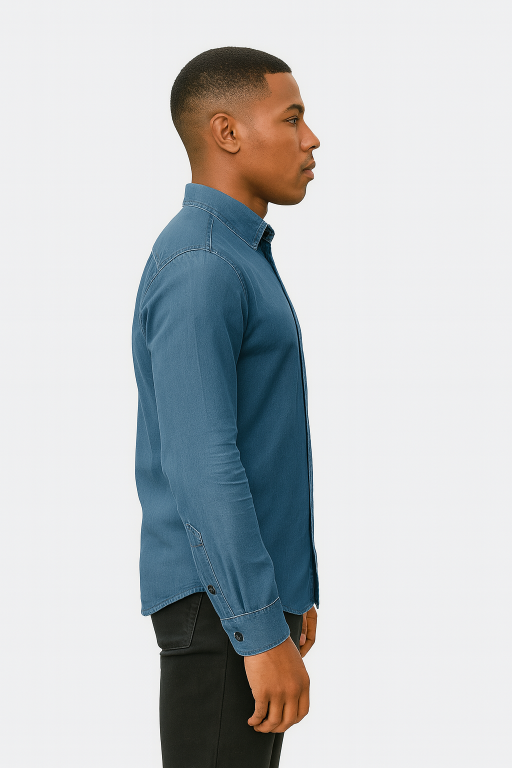 Refresh your wardrobe with this Men’s Blue Denim-Style Cotton Long Sleeve Shirt, a timeless piece that combines durability with modern style. Made from soft, breathable cotton with a denim-inspired look, this shirt is comfortable enough for everyday wear while adding a rugged edge to your outfit.