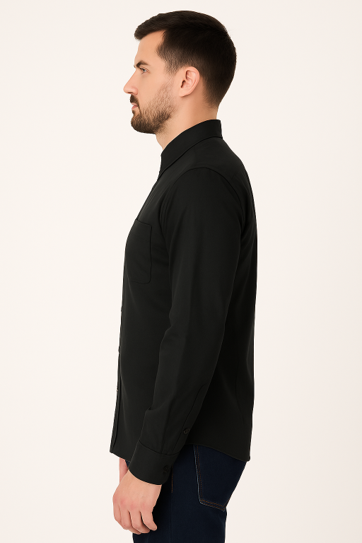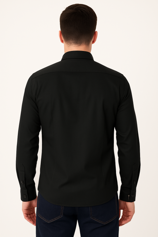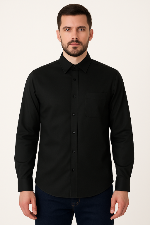 Designed with a button-down front, full sleeves, and a classic spread collar, this shirt also includes a single chest pocket for a practical yet stylish touch. Whether paired with trousers for a polished formal look or styled with jeans for an evening outing, this black shirt is a versatile must-have in every man’s wardrobe.
